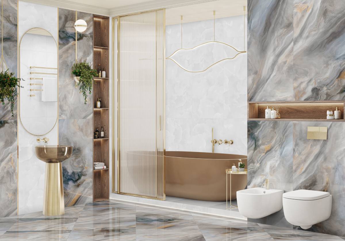 Во всех коллекциях сочетаются самые популярные текстуры мрамора, камня, бетона и дерева, мы предлагаем потребителю готовые трендовые решения для ванных комнат.