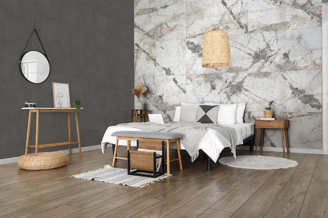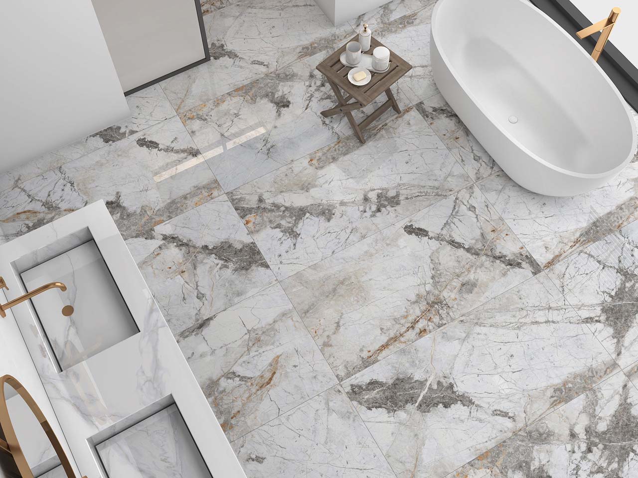 Коллекция Gabriel – это роскошная текстура мрамора с каменными венами, широкими серыми прожилками и трещинами. Керамогранит сразу привлекает к себе внимание необычным и ярким природным рисунком. Это идеальный вариант для создания акцента в интерьере. Крупный формат, полированная текстура и неповторяющиеся окна помогут создать элегантный и роскошный интерьер. Керамогранит Gabriel имеет два формата – 60х60, 60х120 и является ректификатом, что позволяет выкладывать плиту с минимальным размером швов.