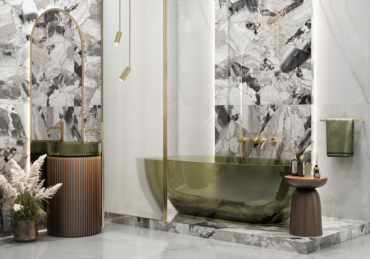 Эксклюзивная текстура натуральной горной породы Obsidian дизайнерами бренда LCM бережно перенесена на поверхность керамогранита в формате 600х1200 мм. Обсидиан в природе представляет собой магматическую горную породу с крупными вкраплениями темного вулканического стекла, такой необычный рисунок образуется в результате быстрого расплавления и охлаждения лавы в горной породе. Его оригинальная текстура и многоцветность от светло-серого до графитового, усиливаются суперполированной поверхностью, добавляя объем и глубину текстуре.