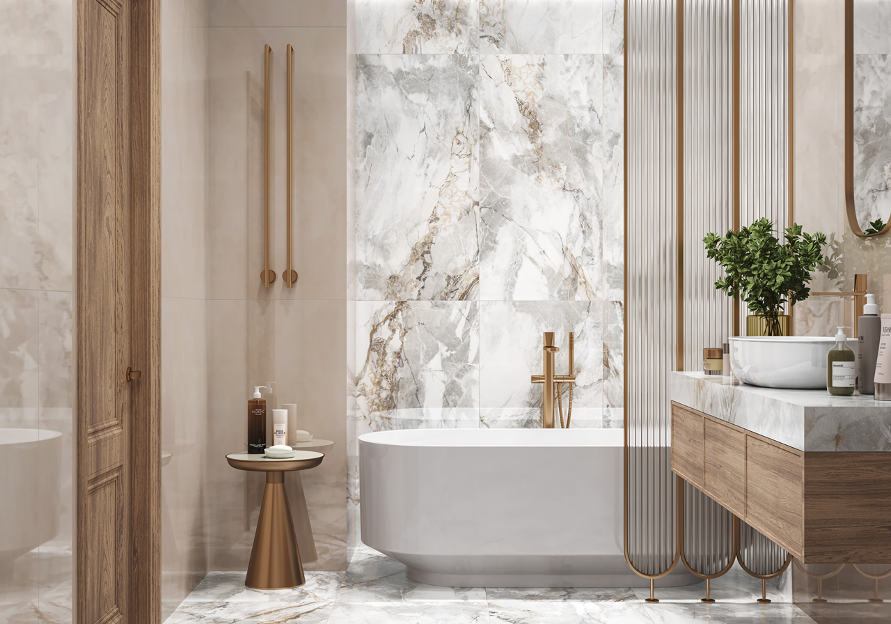 Мягкий по текстуре, но сложный по графике керамогранит Sunset удивляет своей многослойностью и плавными переходами оттенков, а бежевые прожилки пронизывают бело-серые облака мраморной текстуры. Такой дизайн будет интересен в виде акцента в интерьере и в качестве компаньона к спокойным, однородным текстурам. Полированная поверхность подчеркивает детали, а ректифицированные края позволяют осуществить укладку керамогранита с минимальным швом, что сделает интерьер изысканным и гармоничным.